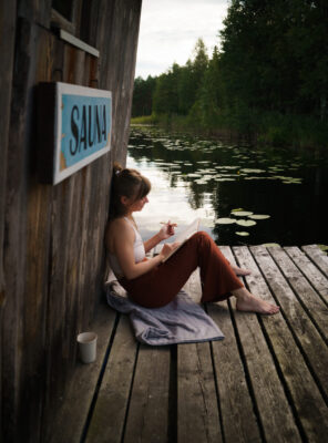 ▹ A beautiful retreat container with space to support well being through nourishing food, sauna and nature.