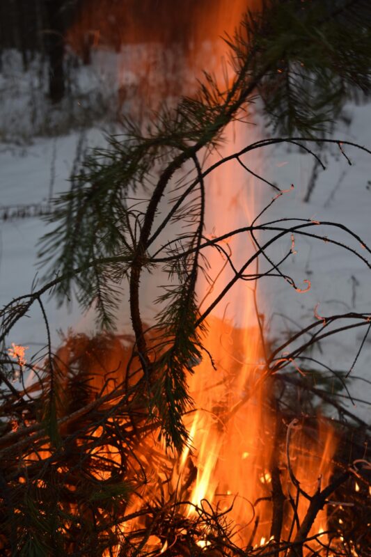 Kvällsmys: vi möts vid brasan. Lyssnar på en saga, sång och musik.